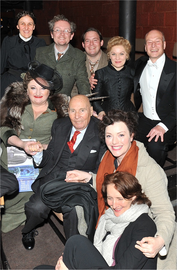 Last night of Elegy for Young Lovers at ENO/Young Vic. Cast with composer Hans Werner Henze.