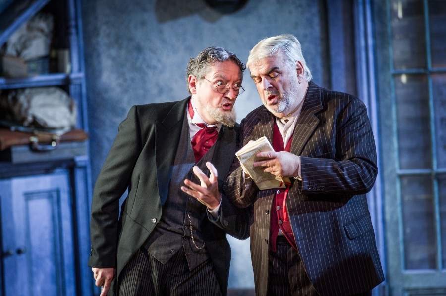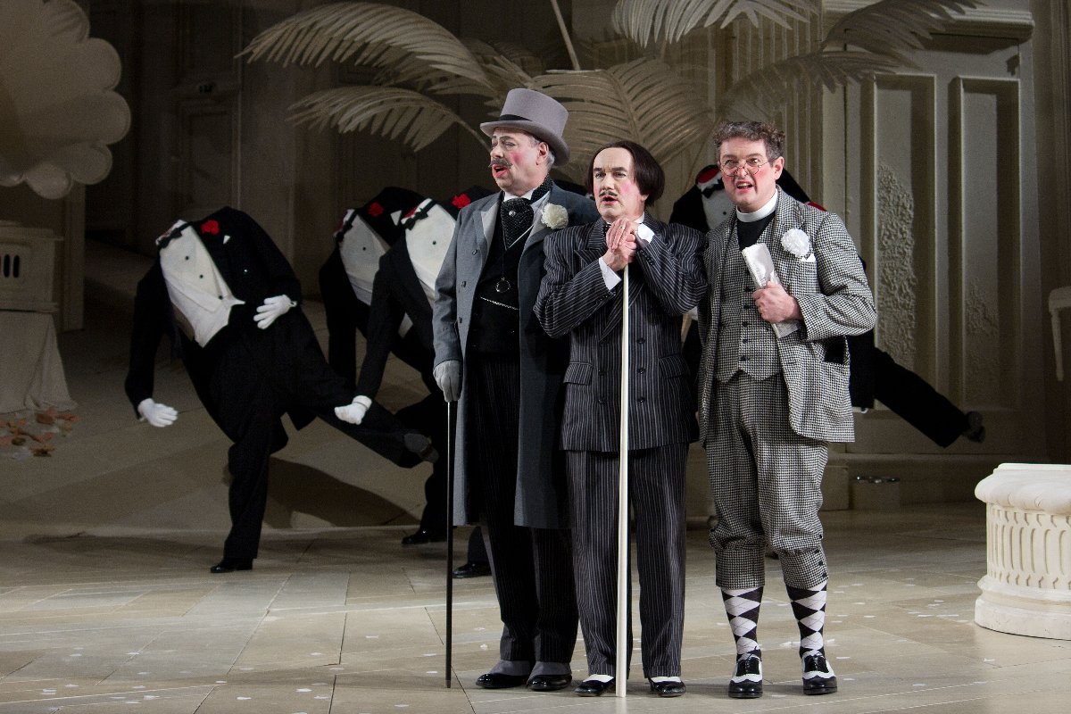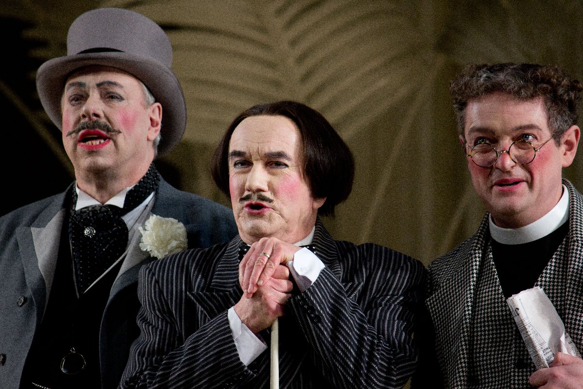 Pish Tush Mikado ENO with left Donald Maxwell (Pooh-Bah), middle Richard Suart (Ko-Ko) Photo by Fiona Rich